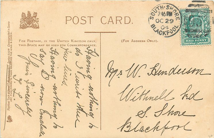 OILETTE, PRINTED IN ENGLAND, 2 backs, listed in 1908/1909 &1911/1912 & 1912/1913 &1913/1914 & 1930 POSTCARD Catalogues