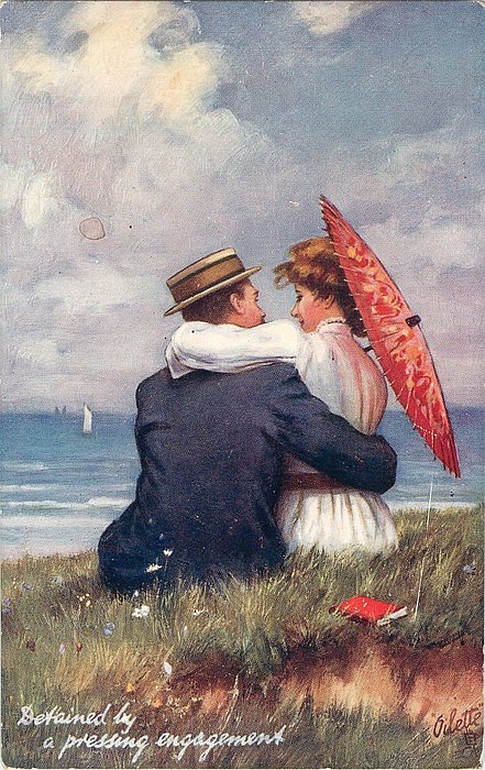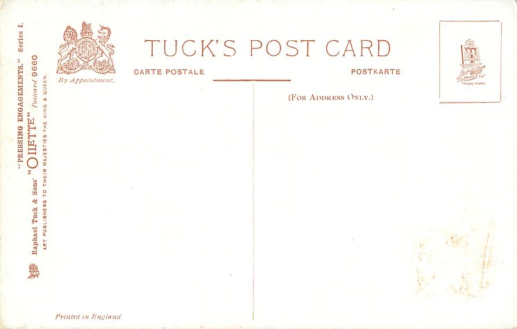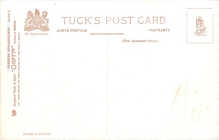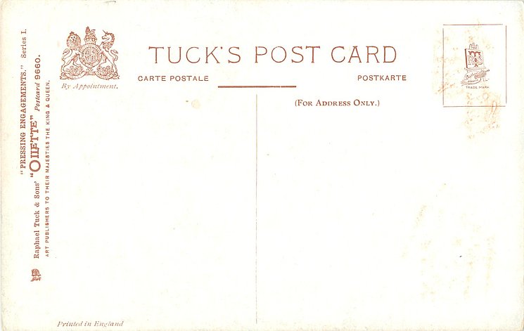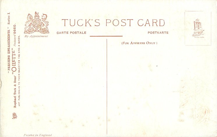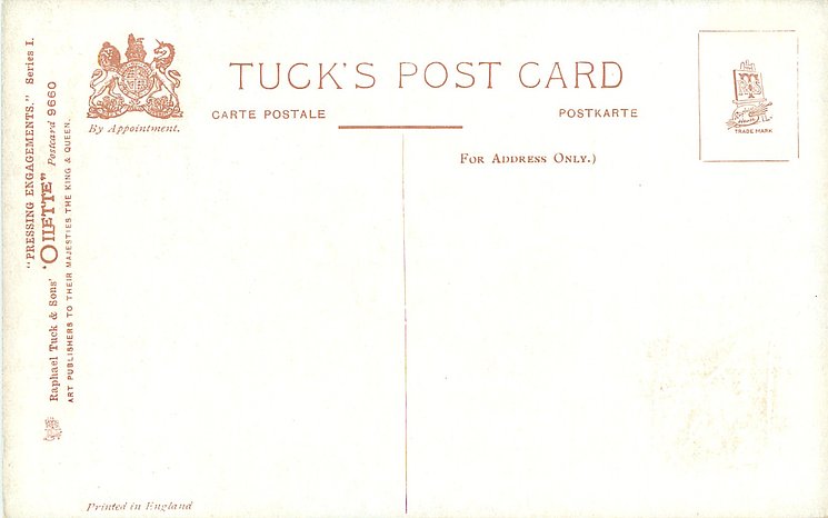 OILETTE, PRINTED IN ENGLAND, listed as ARE WE DOWNHEARTED? in 1911/1912 & 1913/1914 Postcard Catalogues