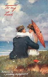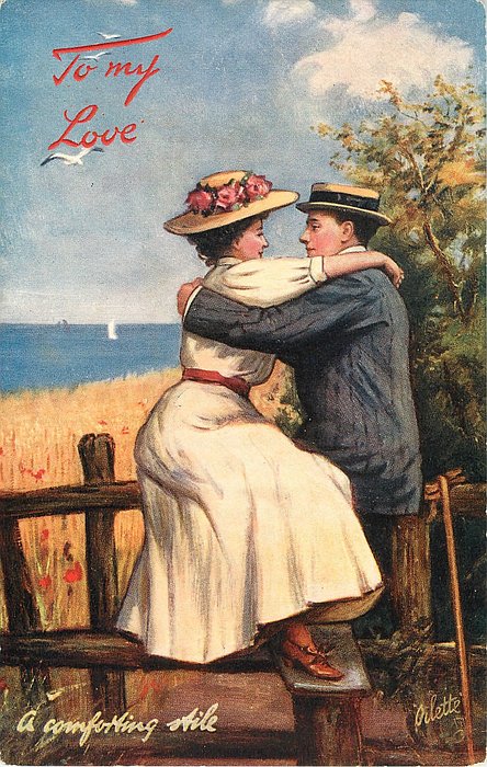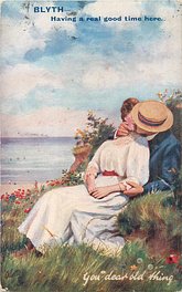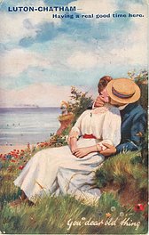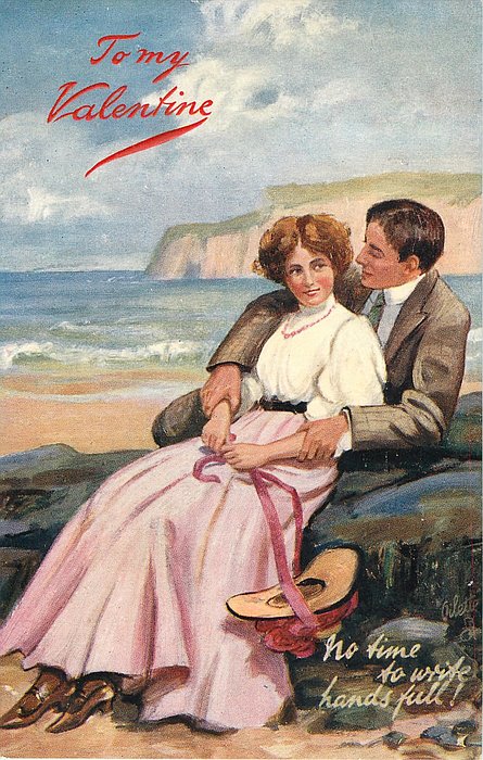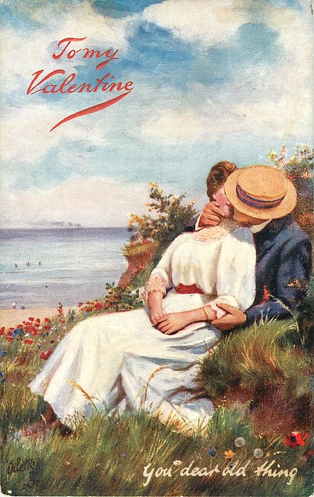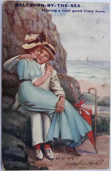 comes opt. in red TO MY VALENTINE, in blue SALTBURN-BY-THE-SEA verse, LUTON-CHATNAM verse, BLYTHE, SOUTHEND-ON-SEA--HAVING A GOOD TIME HERE