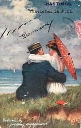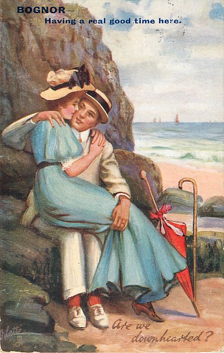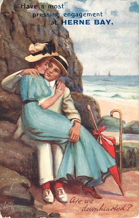 comes opt. in blue LLANDUDNO. HAVE A MOST PRESSING ENGAGEMENT AT HERNE BAY, BOGNOR verse, in red VALENTINE MINE, SALTBURN BY THE SEA verse in blue