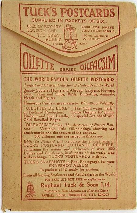 OILETTE, PRINTED IN ENGLAND, COPYRIGHT LONDON, listed in 1930 Postcard Catalogue