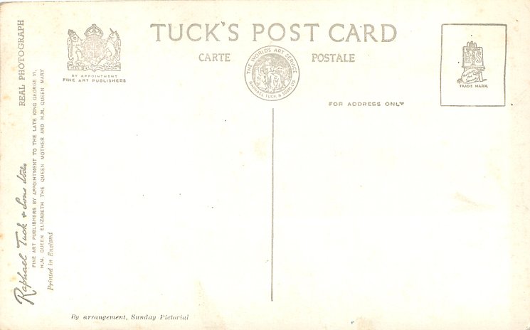 REAL PHOTOGRAPH, PRINTED IN ENGLAND, BY ARRANGEMENT SUNDAY PICTORIAL