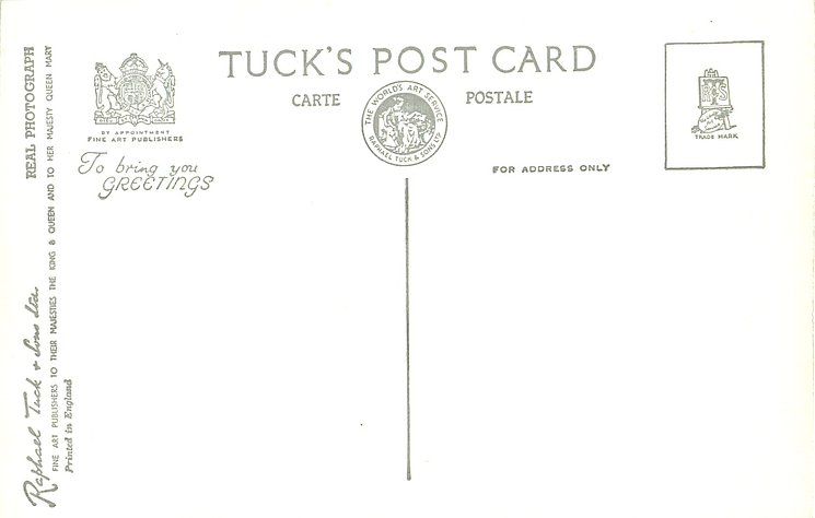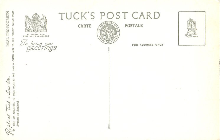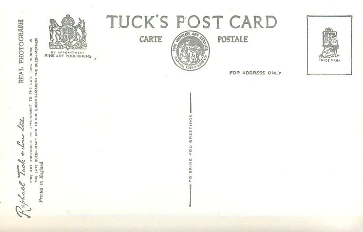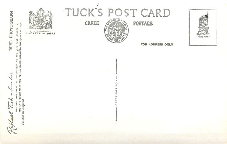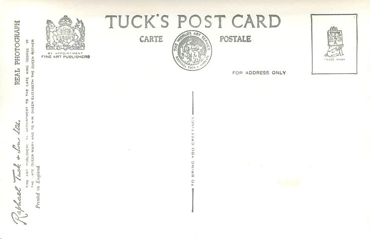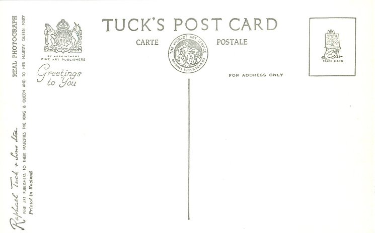 REAL PHOTOGRAPH, PRINTED IN ENGLAND, PHOTOGRAPH BY BARON, shades of grey/black