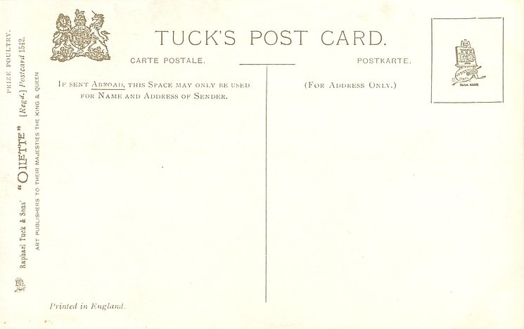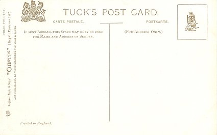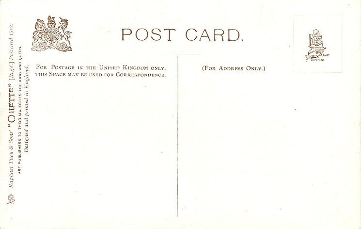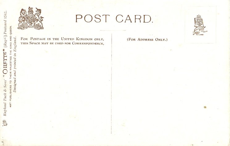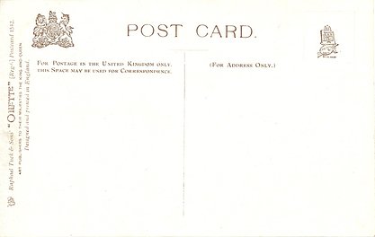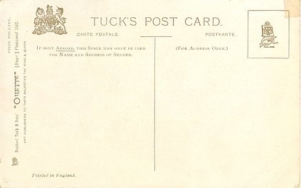 OILETTE, PRINTED IN UNITED KINGDOM, COPYRIGHT LONDON, AFTER THE ORIGINAL DRAWING BY F.J.S. CHATTERTON, listed in 1926/1927 & 1930 Postcard Catalogues