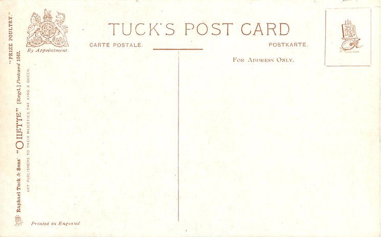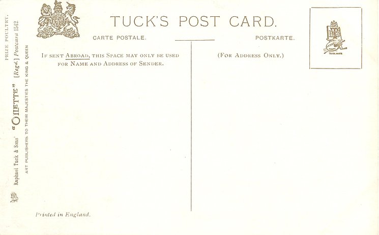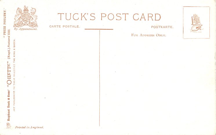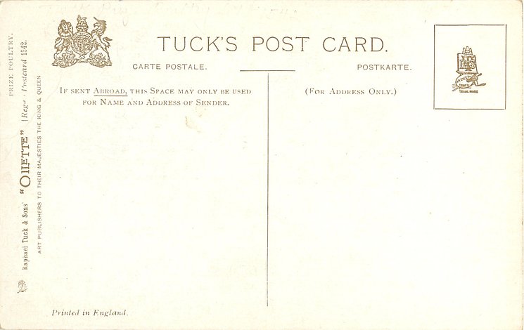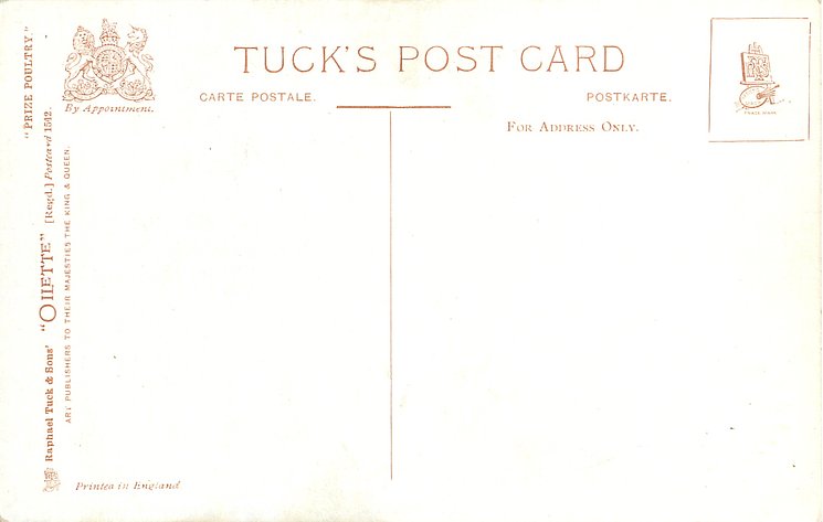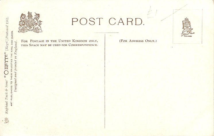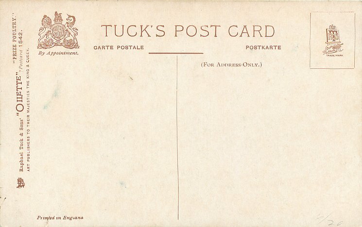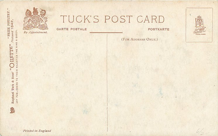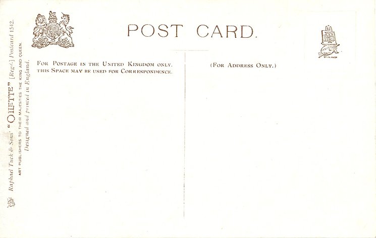 OILETTE, 3 backs, PRINTED IN ENGLAND or DESIGNED AND PRINTED IN ENGLAND, come glittered, listed in 1904 & 1908/1909 & 1911/1912 &1912/1913 &1913/1914 POSTCARD Catalogues