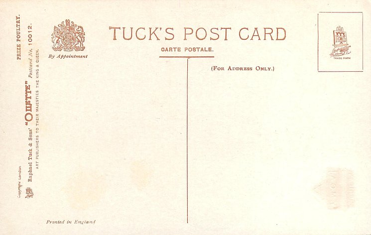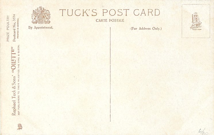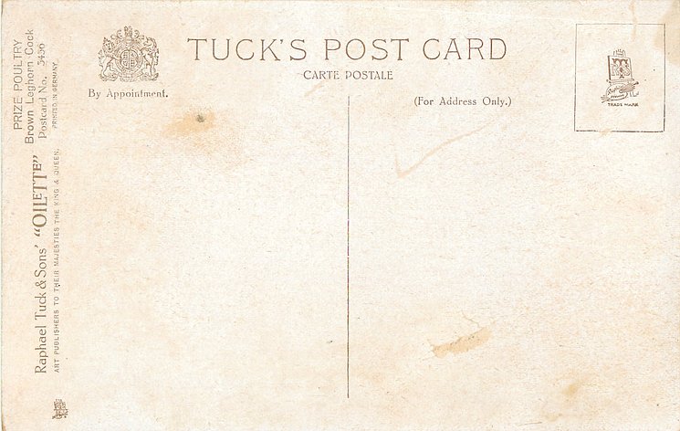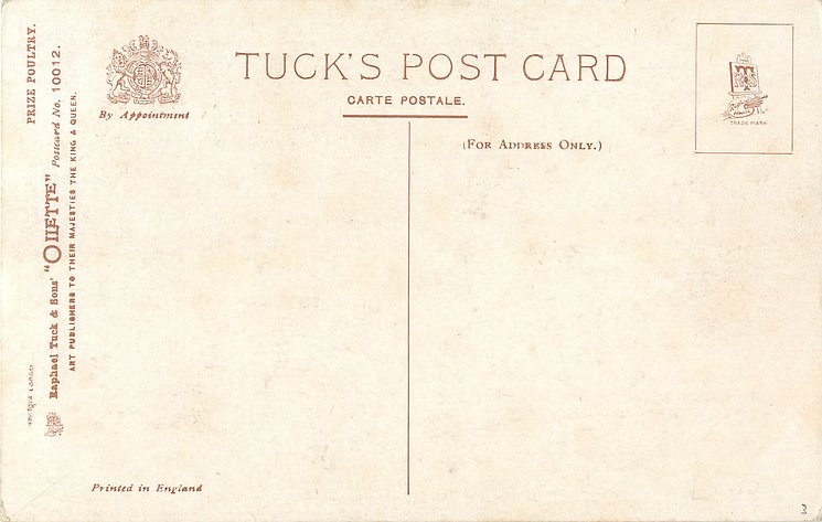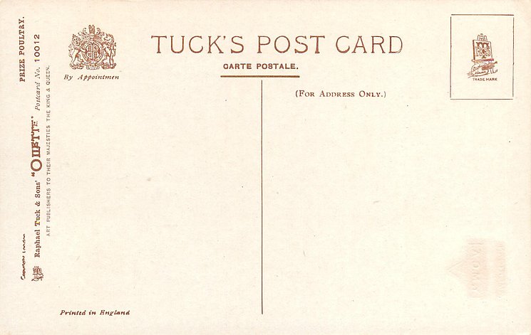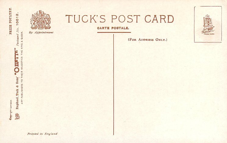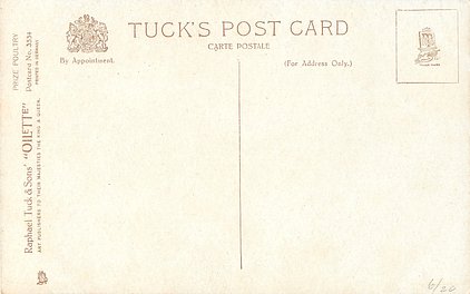 OILETTE, PRINTED IN ENGLAND or PRINTED IN THE UNITED KINGDOM, COPYRIGHT LONDON, same images 9438, listed in 1930 Postcard Catalogue
