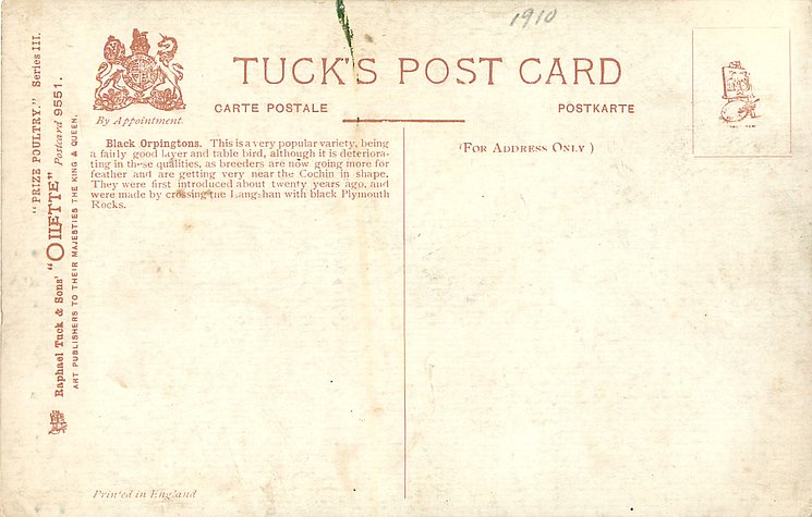 OILETTE, PRINTED IN ENGLAND, listed in 1911/1912 & 1912/1913 POSTCARD Catalogues
