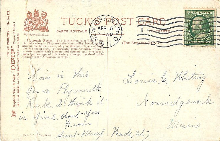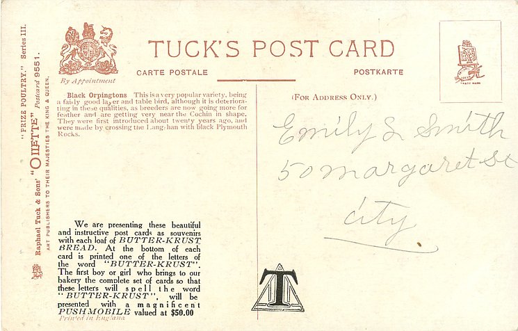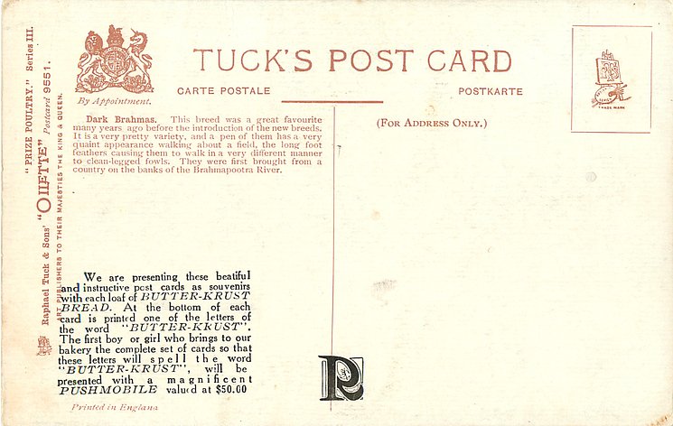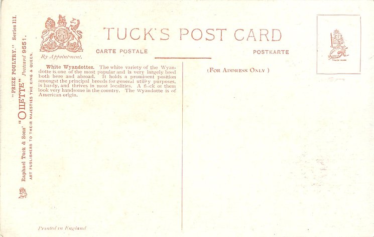 OILETTE, PRINTED IN ENGLAND, listed in 1911/1912 Postcard Catalogue