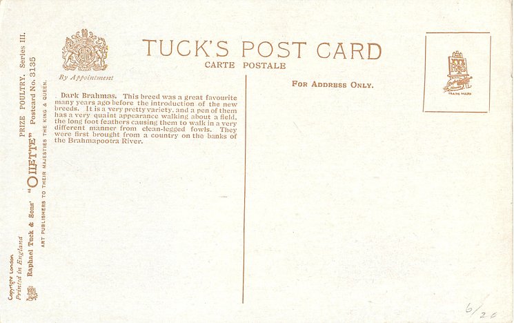OILETTE, PRINTED IN ENGLAND, COPYRIGHT LONDON, listed in 1926/1927 & 1930 Postcard Catalogues
