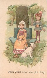 same image comes unnumbered FAINT HEART NE'ER WON FAIR LADY on poor quality, unbleached card stock