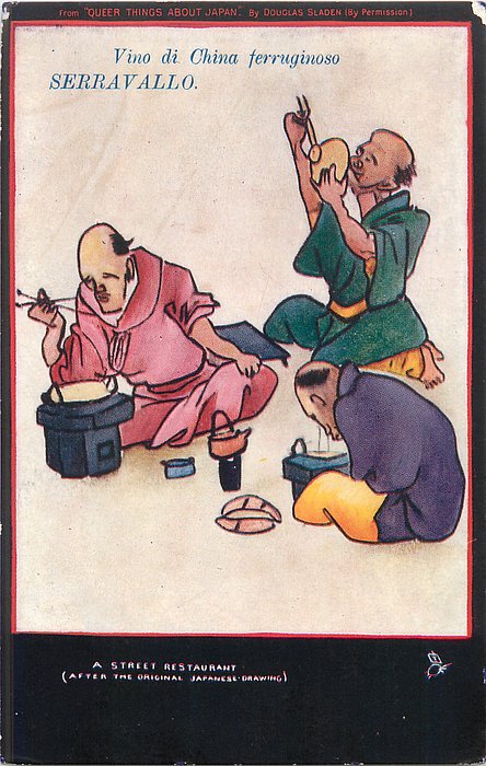 OILETTE CONNOISSEUR, PRINTED IN ENGLAND, FROM "QUEER THINGS ABOUT JAPAN", BY DOUGLAS SLADEN (BY PERMISSION), same images, French backs with English titles some in SERIE 544 & German (international) backs with English titles 102A, 102b listed in postcard catalogue 1908(USA)