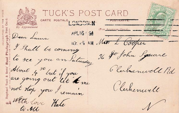 REAL PHOTOGRAPH. No Tuck branding on front of card. Celebrities of the Stage and Tuck branding on back of card.