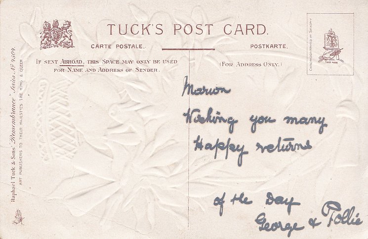 verse:- IN THE SWEET LANGUAGE OF THE FLOWERS I SEND HEART'S GREETING TO YOU.