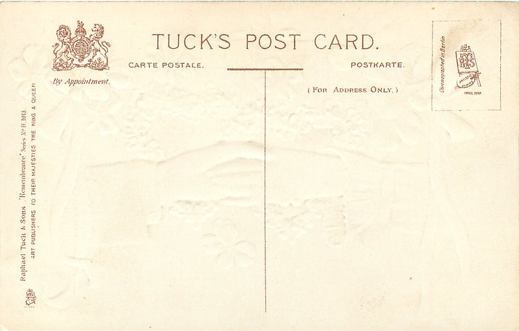 embossed, gilt card title, CHROMOGRAPHED IN SAXONY (in stamp box)