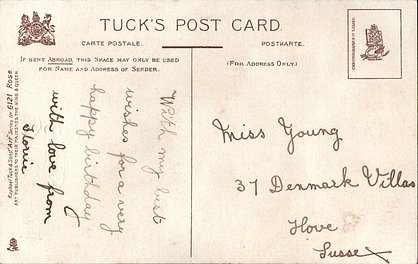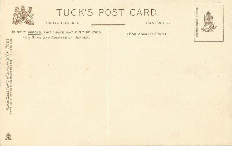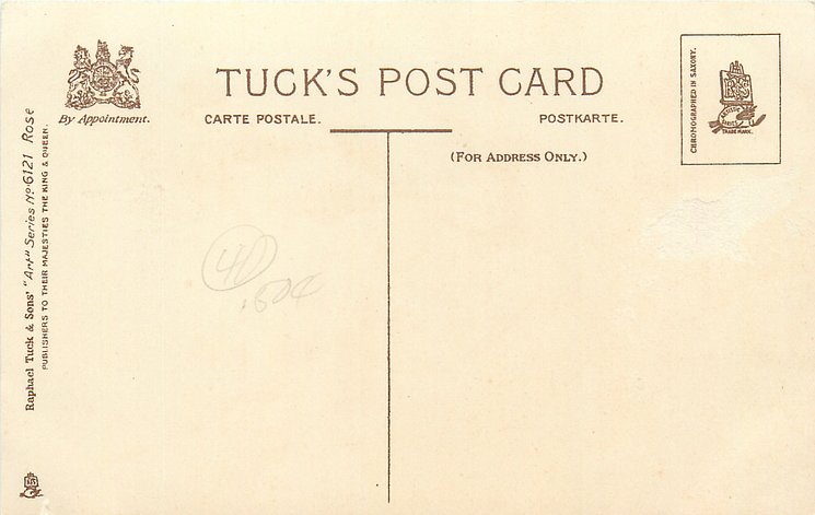 ART, 3 backs, CHROMOGRAPHED IN SAXONY (in or out of stamp box), listed in 1911/1912 Postcard Catalogue, same images German backs 384B