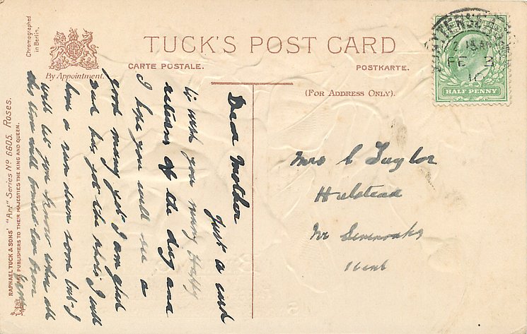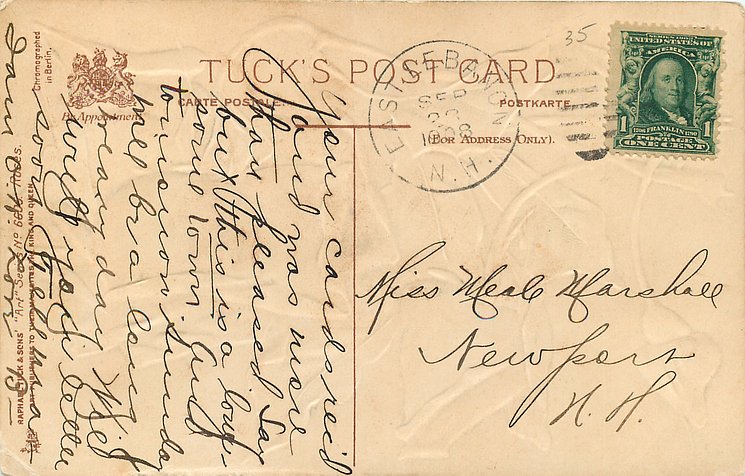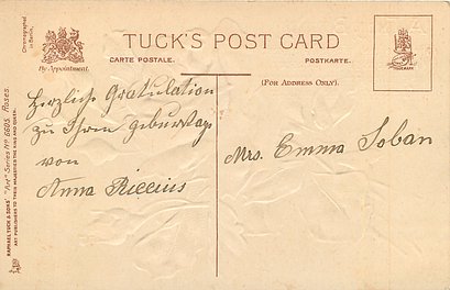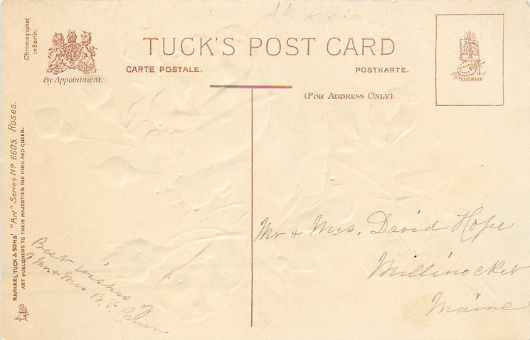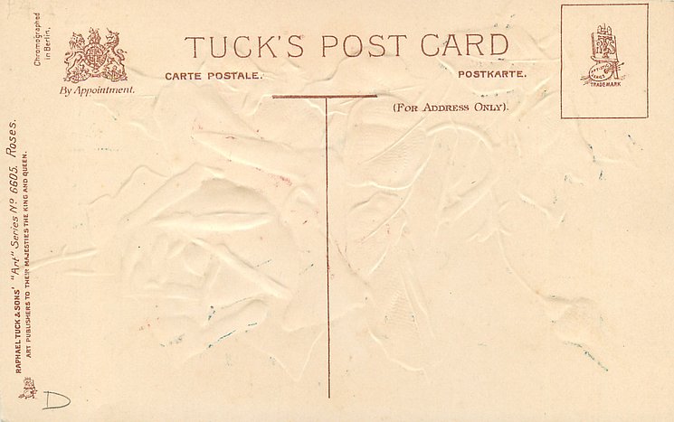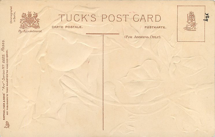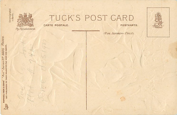 embossed, ART, CHROMOGRAPHED IN BERLIN, listed in 1911/1912 Postcard Catalogue
