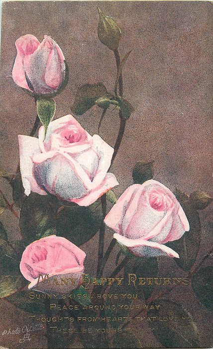comes wirh gilt opt.MANY HAPPY RETURNS & verse:- SUNNY SKIES ABOVE YOU PEACE AROUND YOUR WAY THOUGHTS FROM HEARTS THAT LOVE YOU THESE BE YOURS TODAY!