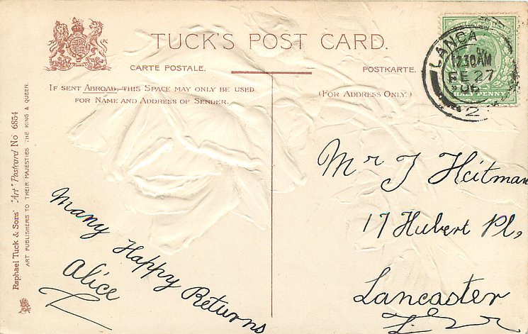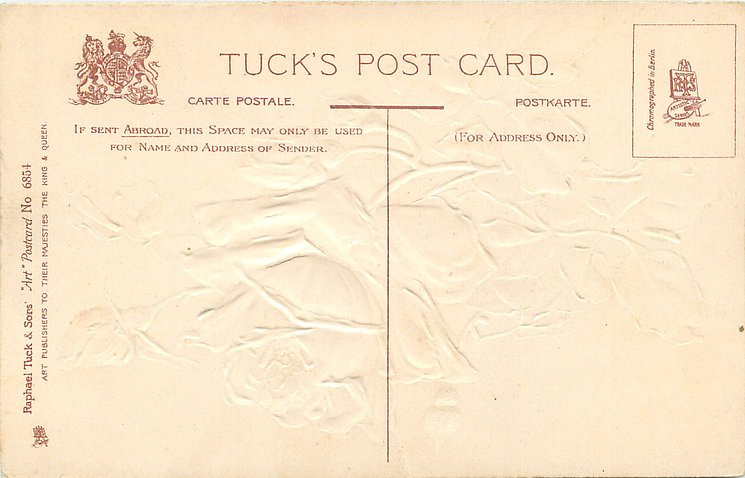 embossed, ART, CHROMOGRAPHED IN SAXONY (in stamp box or not), 2 backs, listed in 1908/1909 Catalogue