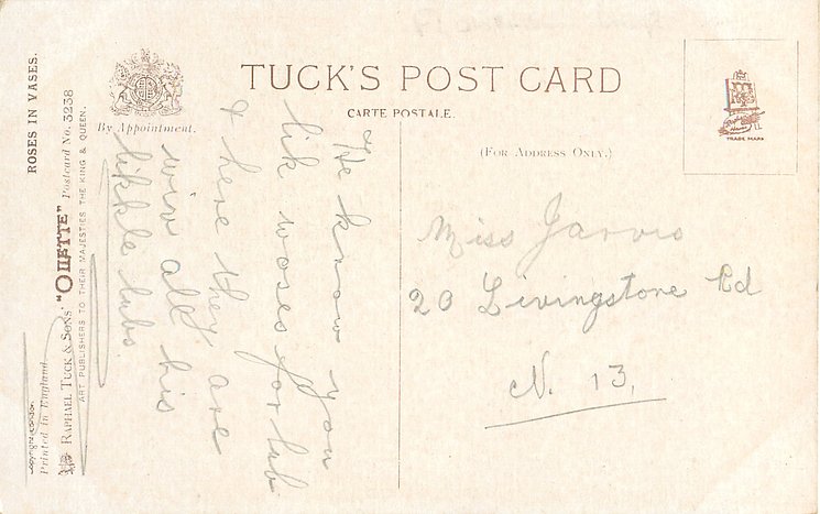 OILETTE, PRINTED IN ENGLAND, COPYRIGHT LONDON, listed in 1930 Postcard Catalogue