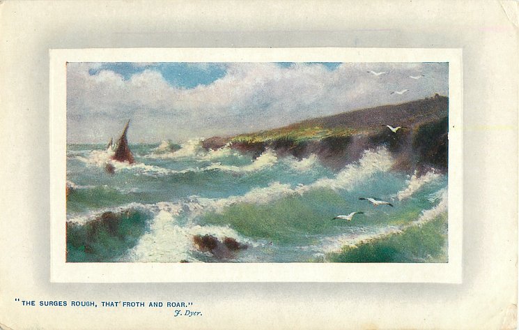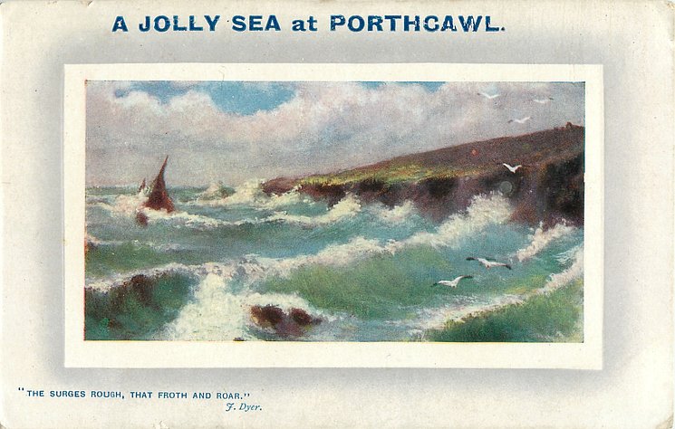 comes opt. in blue A JOLLY SEA AT PORTHCAWL, quote F.DYER