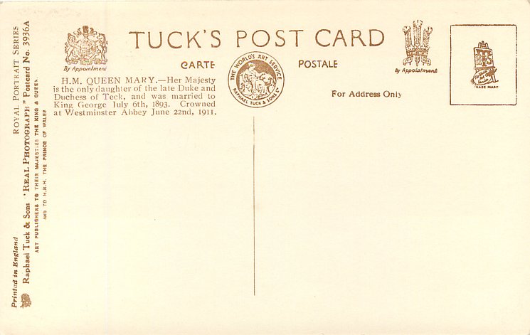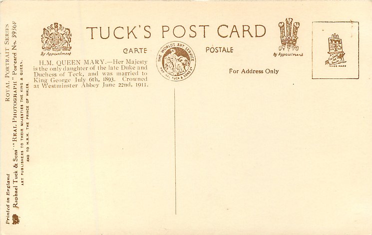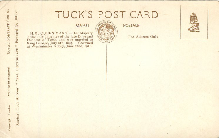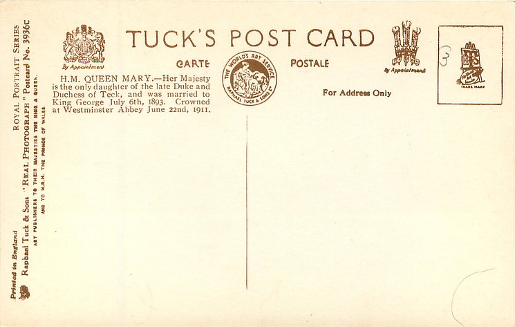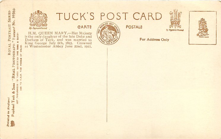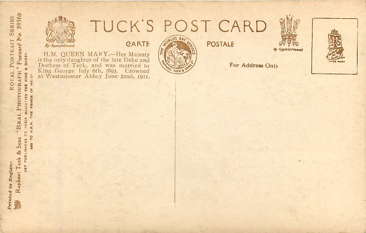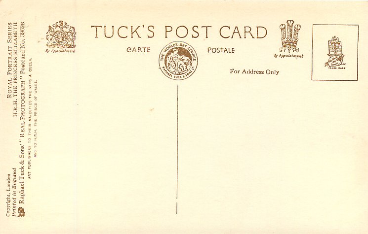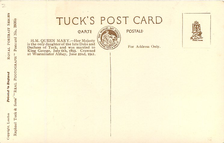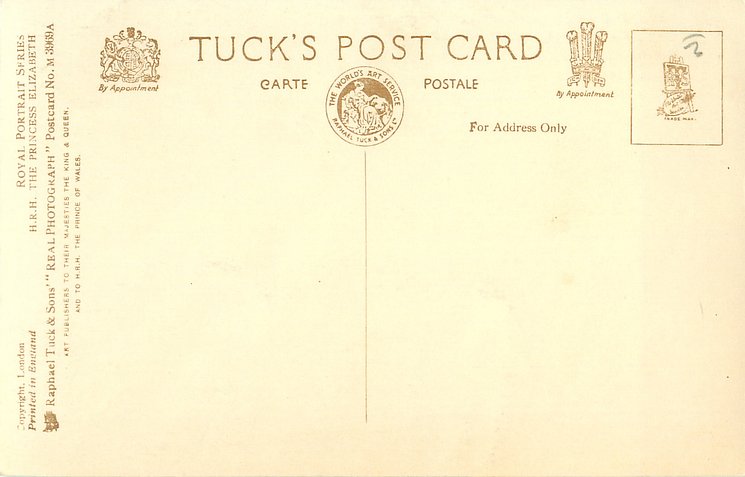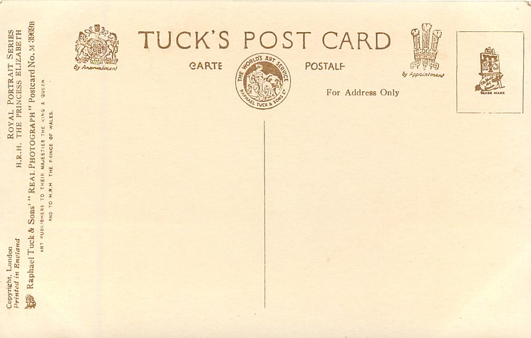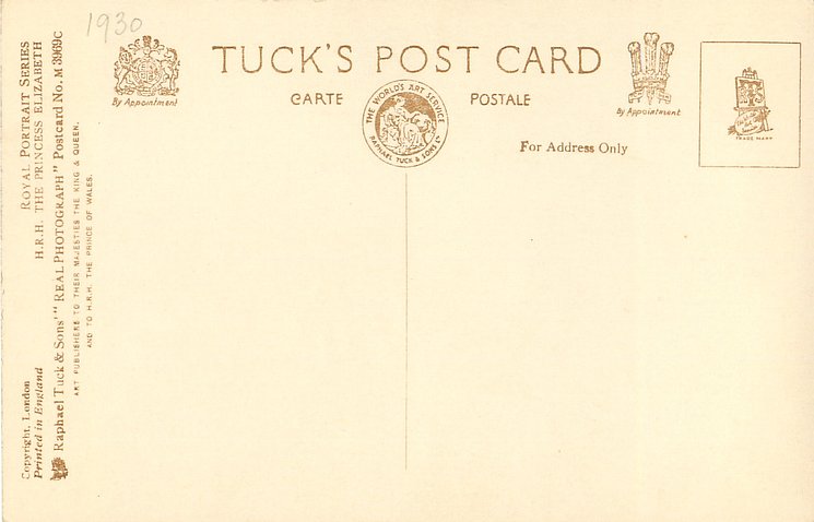 REAL PHOTOGRAPH, PRINTED IN ENGLAND, COPYRIGHT LONDON, listed in 1930 POSTCARD Catalogue, card letters on back with and w/o prefix M