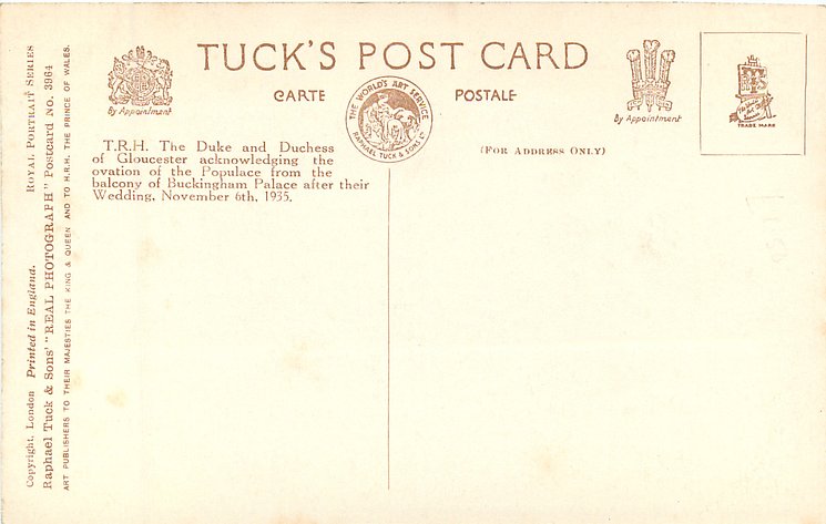 REAL PHOTOGRAPH, PRINTED IN ENGLAND, COPYRIGHT LONDON, 2 backs