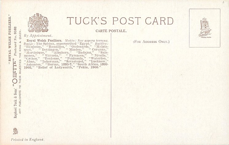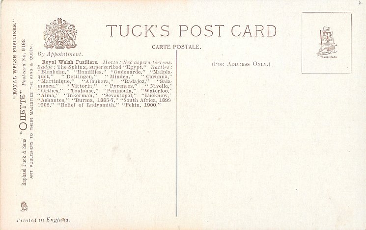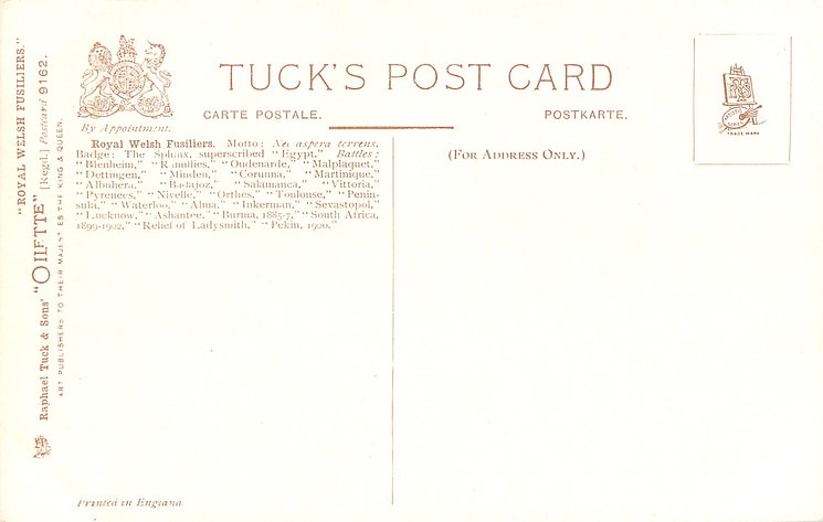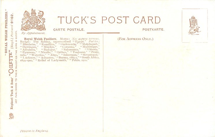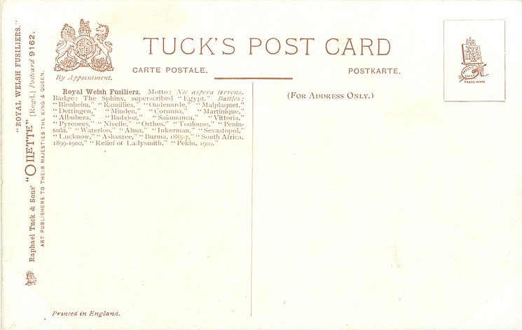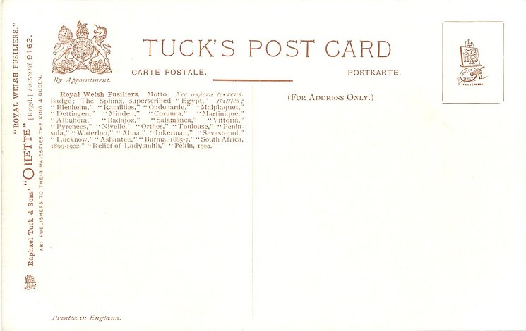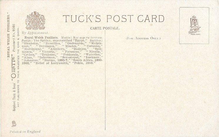 OILETTE, PRINTED IN ENGLAND, listed in 1908/1909 & 1911/1912 & 1913/1914 Postcard Catalogues