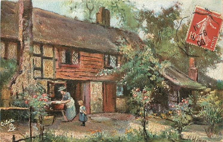 VIEW, CHROMOGRAPHED IN SAXONY, listed as ART, RURAL GEMS in 1908/1909 & 1911/1912 Postcard Catalogue