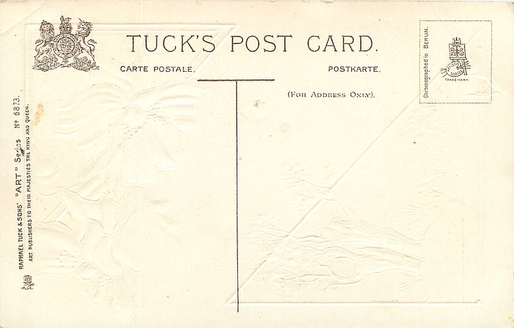 ART, CHROMOGRAPHED IN SAXONY, set title does not appear on cards, listed in 1908/1909 & 1911/1912 Postcard Catalogue