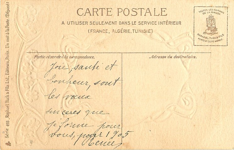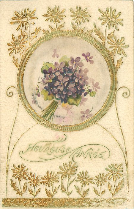 come with gilt opts. BONNE ANNEE or VOEUX SINCERES, insets come in green or purple