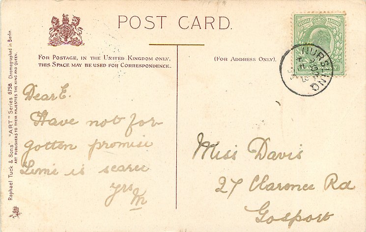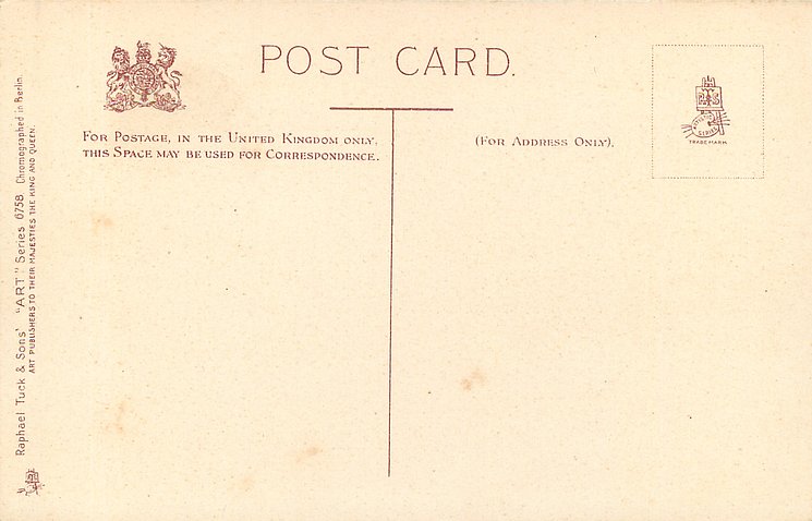 ART, CHROMOGRAPHED IN SAXONY, set title does not appear on cards, listed in 1908/1909 & 1911/1912 Postcard Catalogue