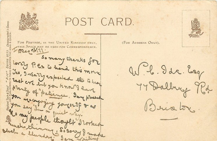 OILETTE, come Oilfacsim but not so trade-named, PRINTED IN ENGLAND, with or w/o COPYRIGHT LONDON, come with YMCA overprints, listed in 1908/1909 & 1911/1912 & 1913/1914 & 1926/1927 Postcard Catalogues, listed in TUCK'S TRAVELOGUES (USA?1905)
