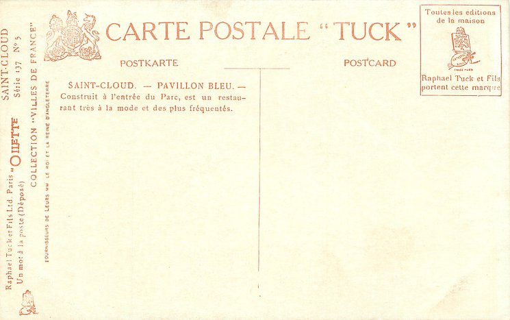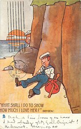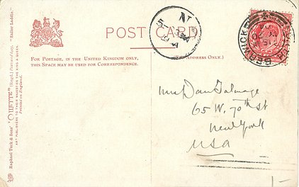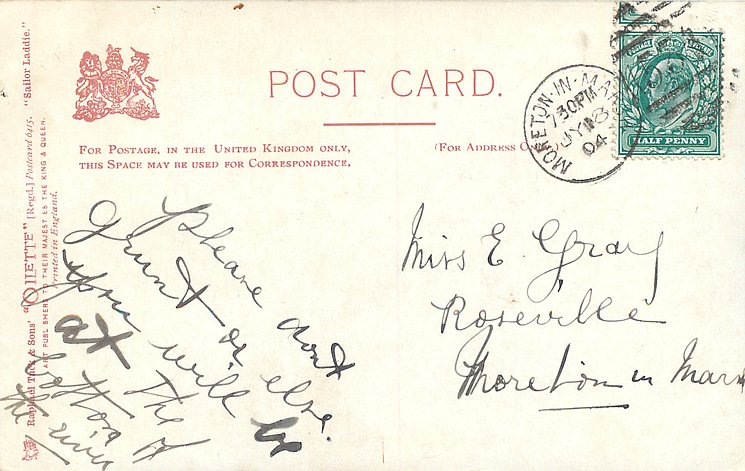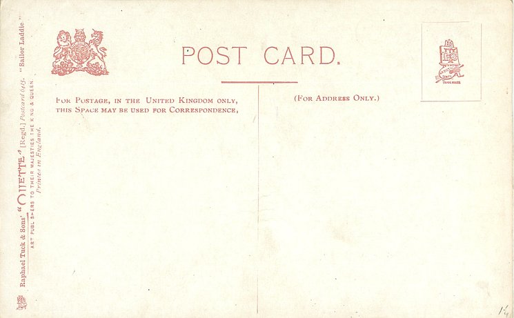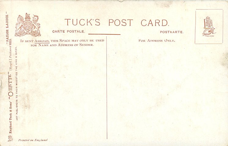 OILETTE, PRINTED IN ENGLAND, come with and w/o ILLUSTRATED SONGS verse in bottom border, 2 backs, listed in 1904 & 1908/1909 & 1911/1912 & 1913/1914 Postcard Catalogues