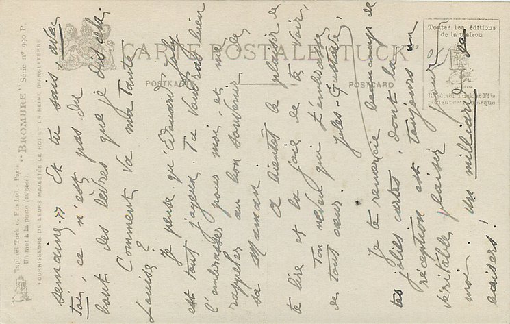 photographic, hand-coloured, BROMURE, UN MOT A LA POSTE, (DEPOSE), suffix P