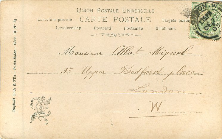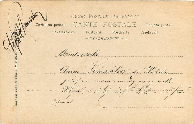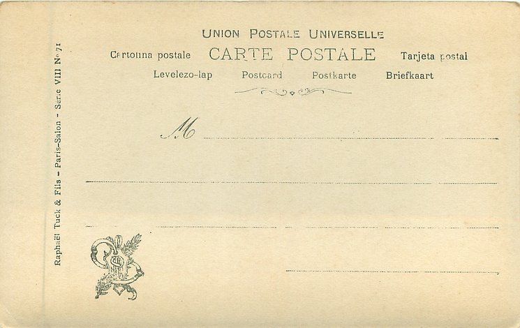 COPYRIGHT 1905 BY EUG. CHAPERON same photographic image & title produced by THE ROTOGRAPH CO. NEW YORK (GERMANY) with (COPYRIGHT BY RAPHAEL TUCK & fILS)