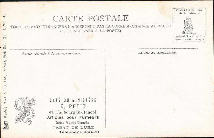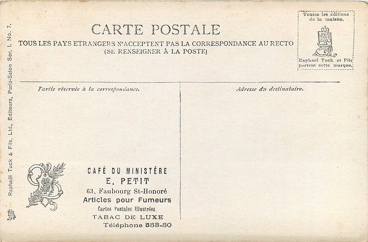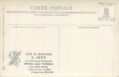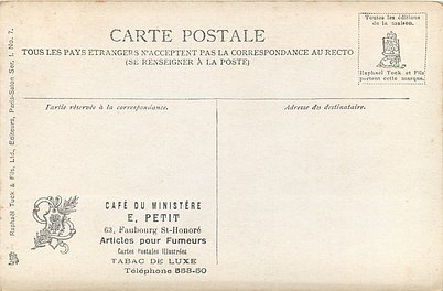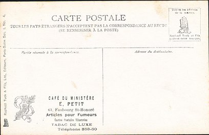 comes CAFE DU MINISTERE E. PETIT ... ARTICLES POUR FUMEURS advert on back