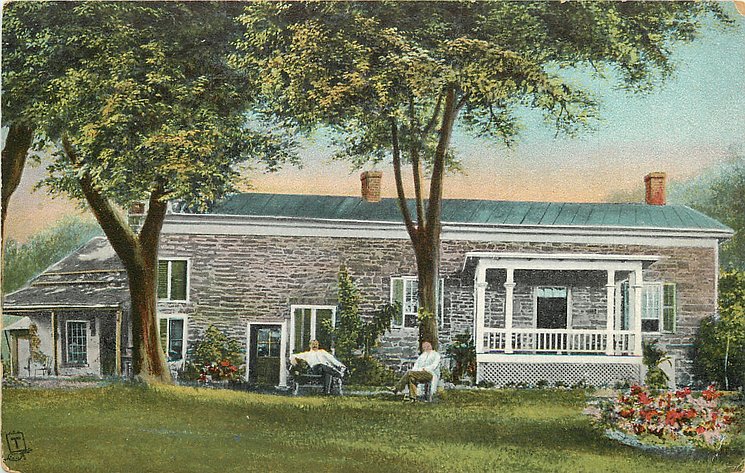 u/b, sepia or shades of grey/black, PRINTED IN GERMANY, pub. HOMMEL'S CORNER PHARMACY. or LUTHER HOMMEL.