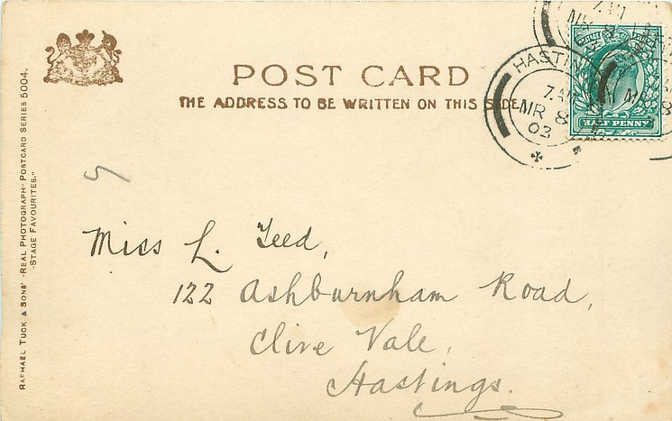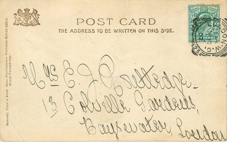 Madge Lessing ( 1862 London -1932 London ) in " Ermine " in Casino Th. N.Y. 1903; in "Noah's Ark" 1906-07 Waldorf Th. London.