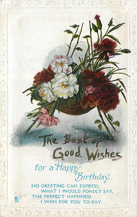 verse: NO GREETING CAN EXPRESS, WHAT I WOULD FONDLY SAY, THE PERFECT HAPPINESS I WISH FOR YOU TO-DAY