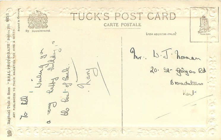 REAL PHOTOGRAPH, PRINTED IN GERMANY, embossed designs on margins