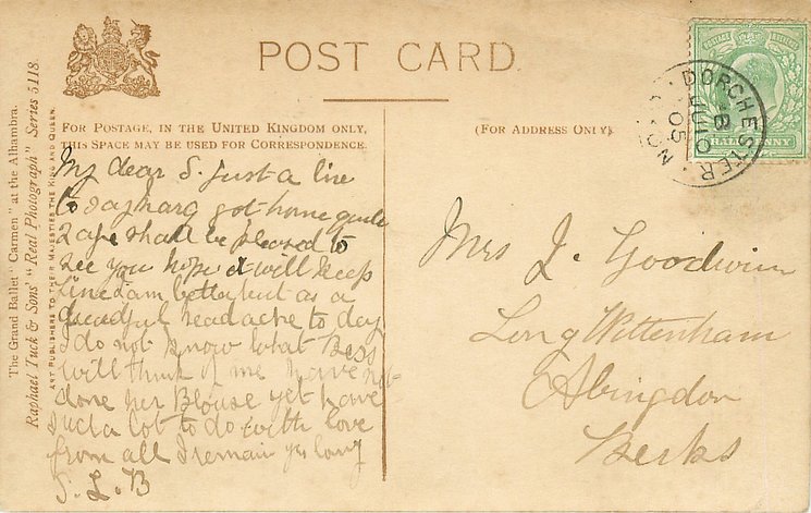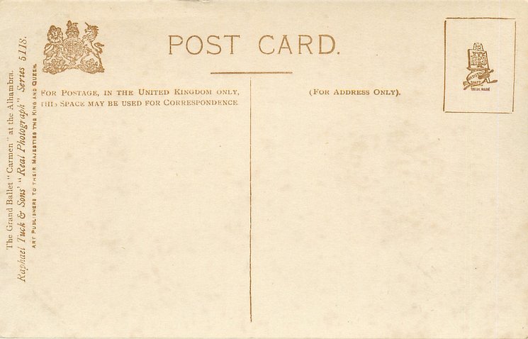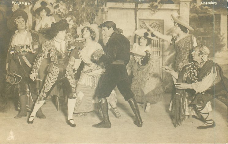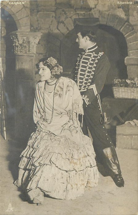 GUERRERO AND MONS. VOLBERT IN THE GRAND BALLET "CARMEN" title on back Rosario Guerrereo (1880 Spain- 1960's) Spanish Dancer in "Carmen" Ballet London Alhambra Th. 1903
