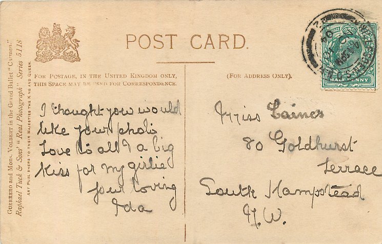 GUERRERO AND MONS. VOLBERT IN THE GRAND BALLET "CARMEN" title on back Mons Volbert Dancer in Carmen Ballet Alhambra Th.London 1903