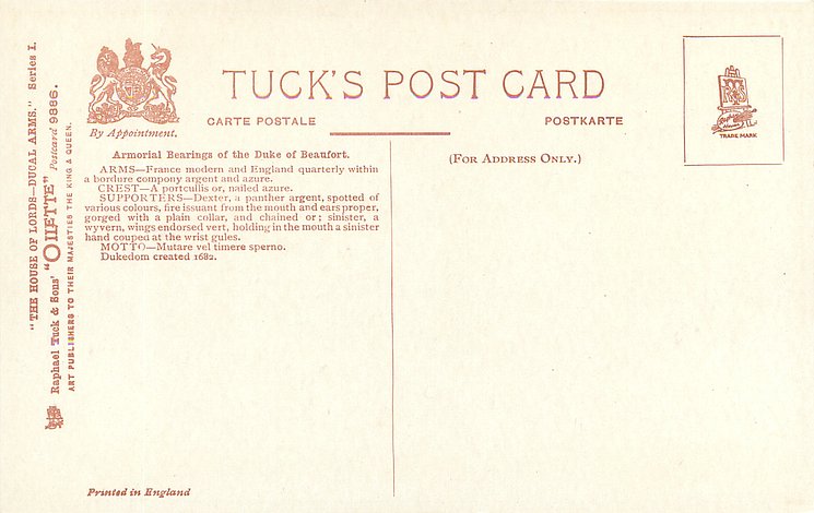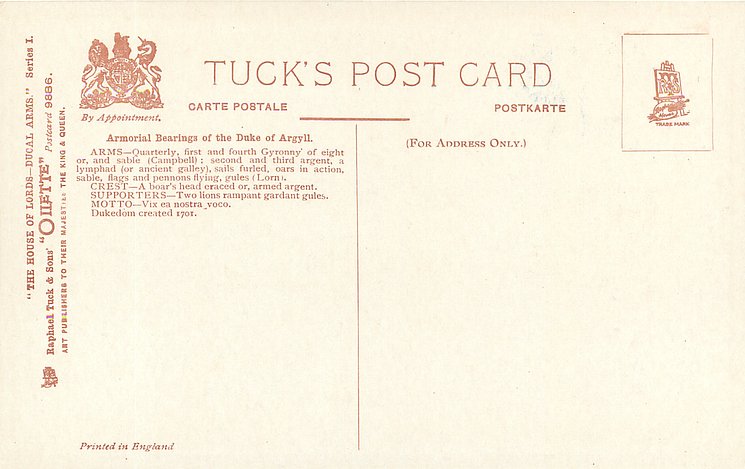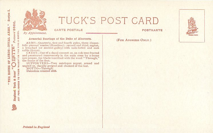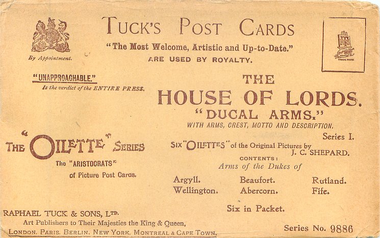 OILETTE, PRINTED IN ENGLAND, listed in 1908/1909(USA) postcard catalogue