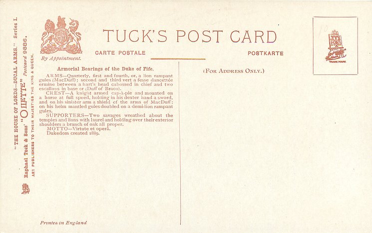OILETTE. PRINTED IN ENGLAND, listed in 1911/1912 & 1913/1914 & 1930 POSTCARD Catalogues