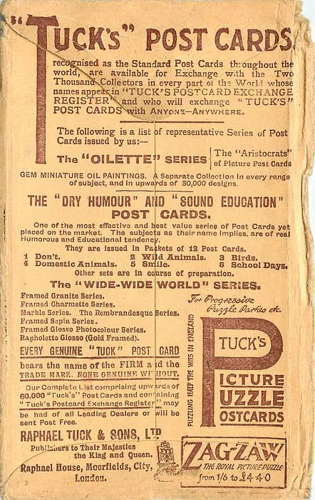 OILETTE, PRINTED IN ENGLAND, listed in 1911/1912 Postcard Catalogue