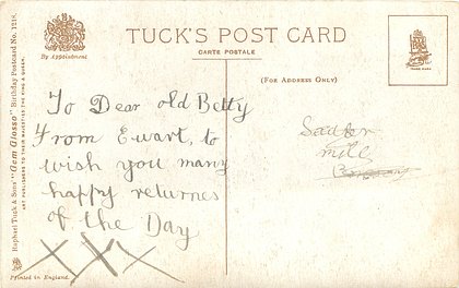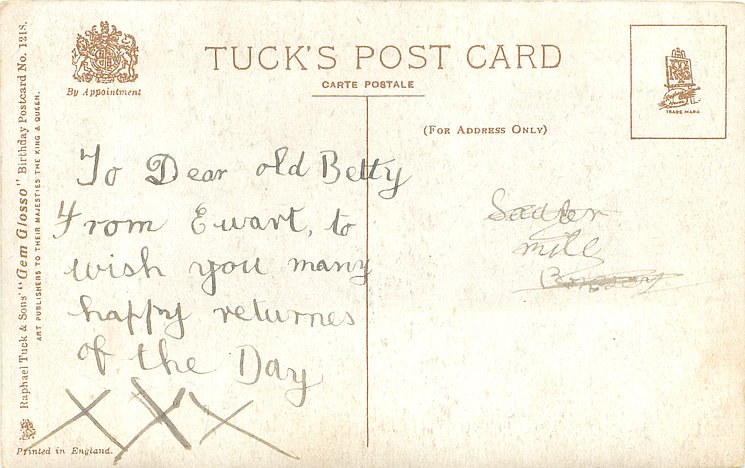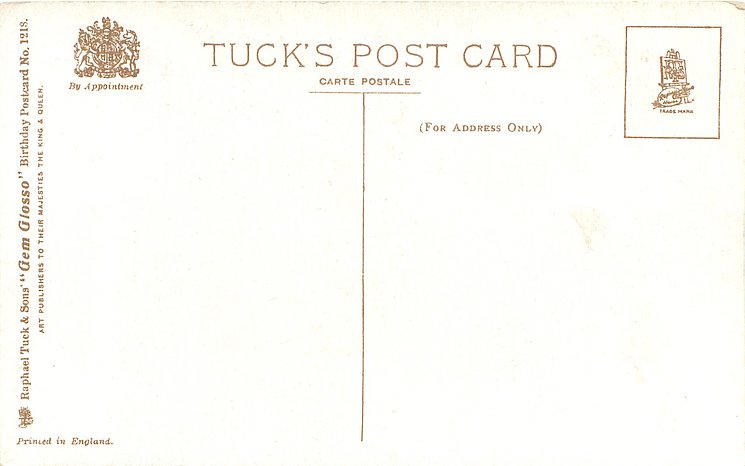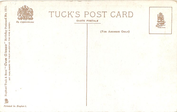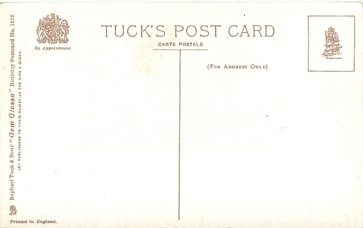 verse:- MIRTH AND FUN AND EVERY PLEASURE THAT BELONGS TO THIS GLAD DAY BE YOUR PORTION IN FULL MEASURE AS ITS MOMENTS SLIP AWAY same image & inscriptions without reference to Family member 1315