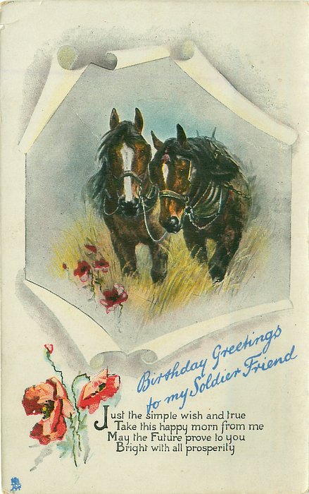 verse:- JUST THE SIMPLE WISH AND TRUE TAKE THIS HAPPY MORN FROM ME MAY THE FUTURE PROVE TO YOU BRIGHT WITH ALL PROSPERITY same image & inscriptions without reference to friend 1304