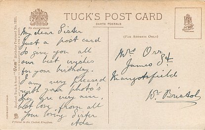 verse:- TO MAKE YOUR FUTURE BLEST MAY THERE BE WANTING NOUGHT TAKE WISHES-ALL MY BEST AND MANY A KINDLY THOUGHT same image & inscriptions without reference to Family member 1313
