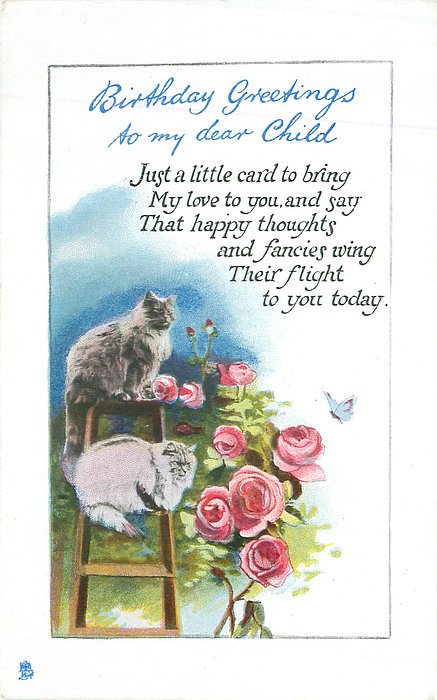 verse:- A LITTLE RHYME I MUST ESSAY TO WISH YOU HAPPINESS TO-DAY, MAY ALL YOU WISH AND HOPE COME TRUE AND MAKE EACH DAY A JOY FOR YOU same image & inscriptions without reference to little pet 1318