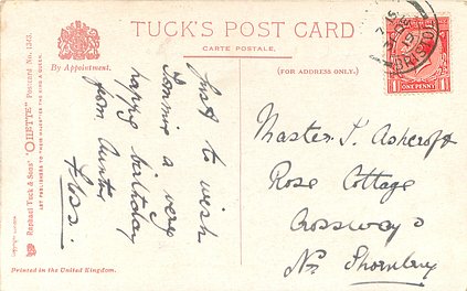 WATER COLOR, PRINTED IN ENGLAND, COPYRIGHT LONDON, same images Birthday R 1173, Christmas C 7180 & New Year N 1012